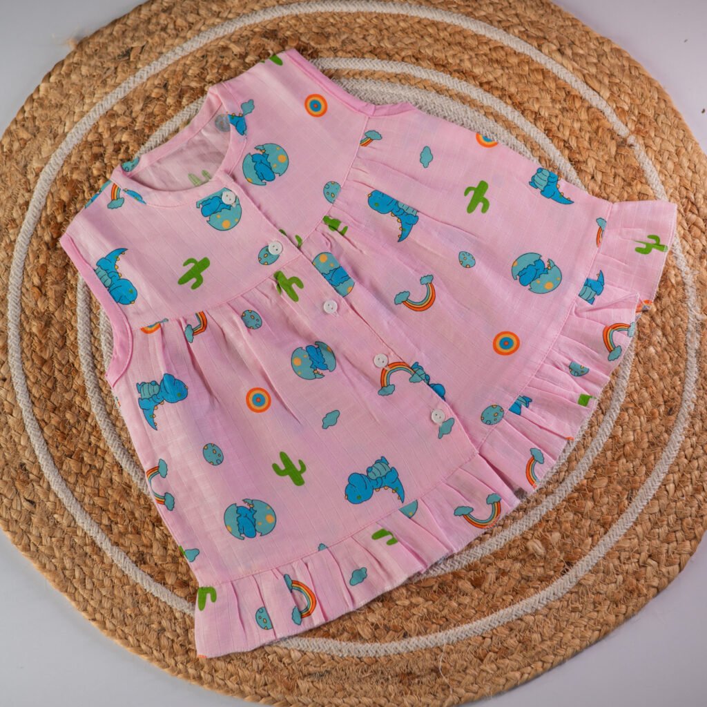 Pink Silk Baby Frock with Gold Polka | Side Knot Ethnic Wear