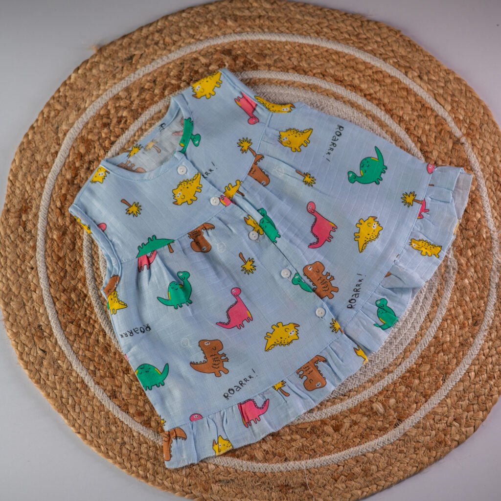 Dress your little one in premium elegance with this Tiny Tots Baby cross-over baby frock, featuring golden dots, and a comfortable cotton lining—perfect for everyday style and special moments.
