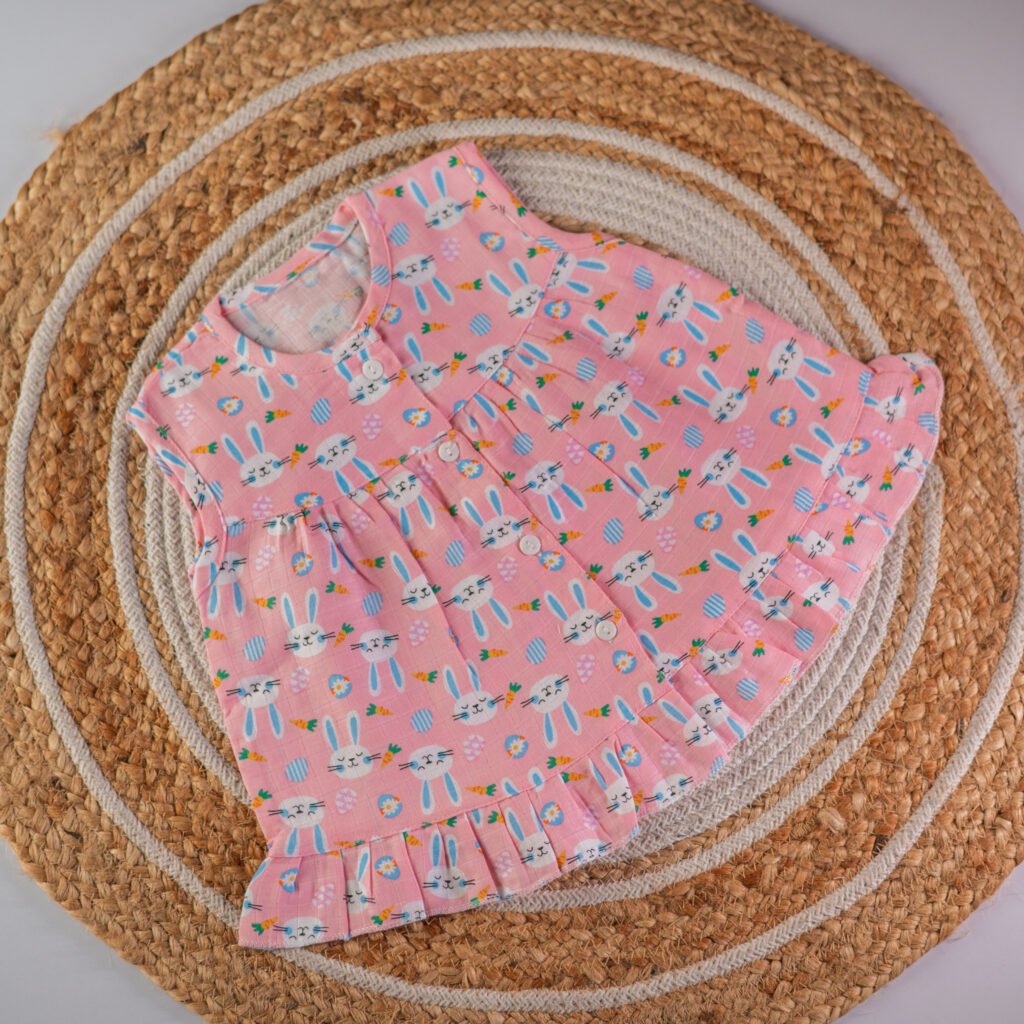 Pink Silk Baby Frock with Gold Polka | Side Knot Ethnic Wear