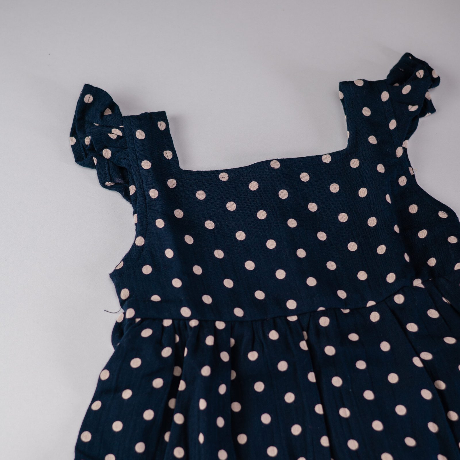 Navy Blue Muslin Polka Dot Frock – Back Button Closure | TinyTots