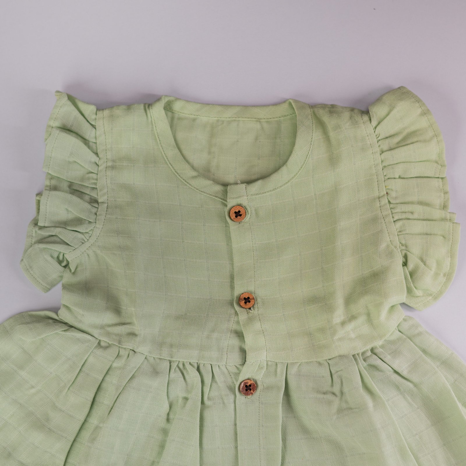 Pista Green Muslin Baby Frock with Wooden Buttons – Soft & Stylish