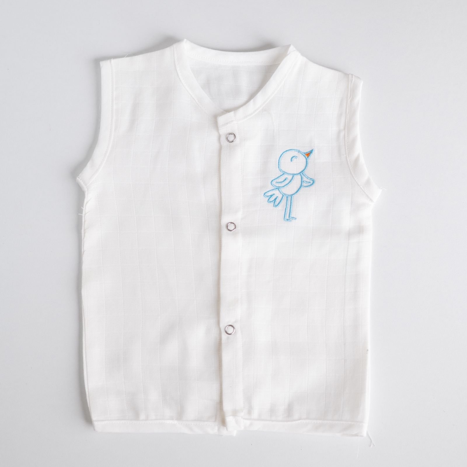 Soft white muslin jabla made from 100% breathable cotton, featuring a cute hand-embroidered bird . Gentle on newborn skin, lightweight, and perfect for everyday comfort.